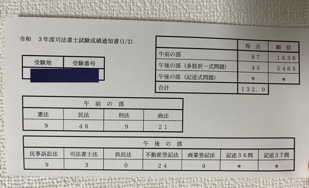 司法書士試験では比較的短期間での受験での7ヶ月の勉強の末望んだ結果は…